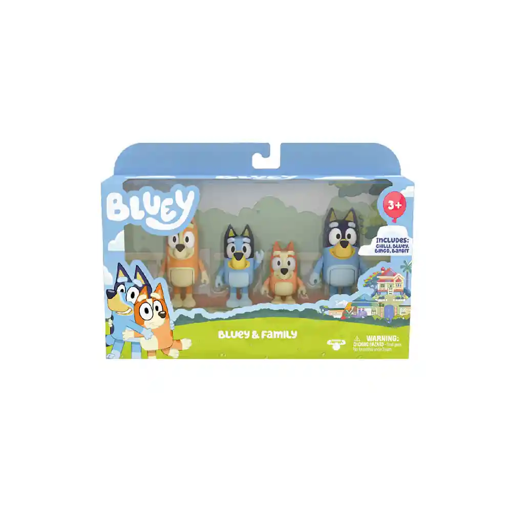 Bluey es un adorable perro de seis años, al que le encanta la diversion y las aventuras con su asombrosa familia . ¡Lleva a casa el juego divertido e imaginativo de Bluey y su familia con estos lindos paquetes de figuras de Bluey! Colecciona el paquete de Familia y Amigos. Todas las figuras de este paquete tienen brazos y torso móviles. ¡A los niños les encantará recrear algunos de los momentos más memorables del espectáculo con estos adorables juguetes! apto a partor de 3 años , sus mediddas 23x16x7 Centimetros