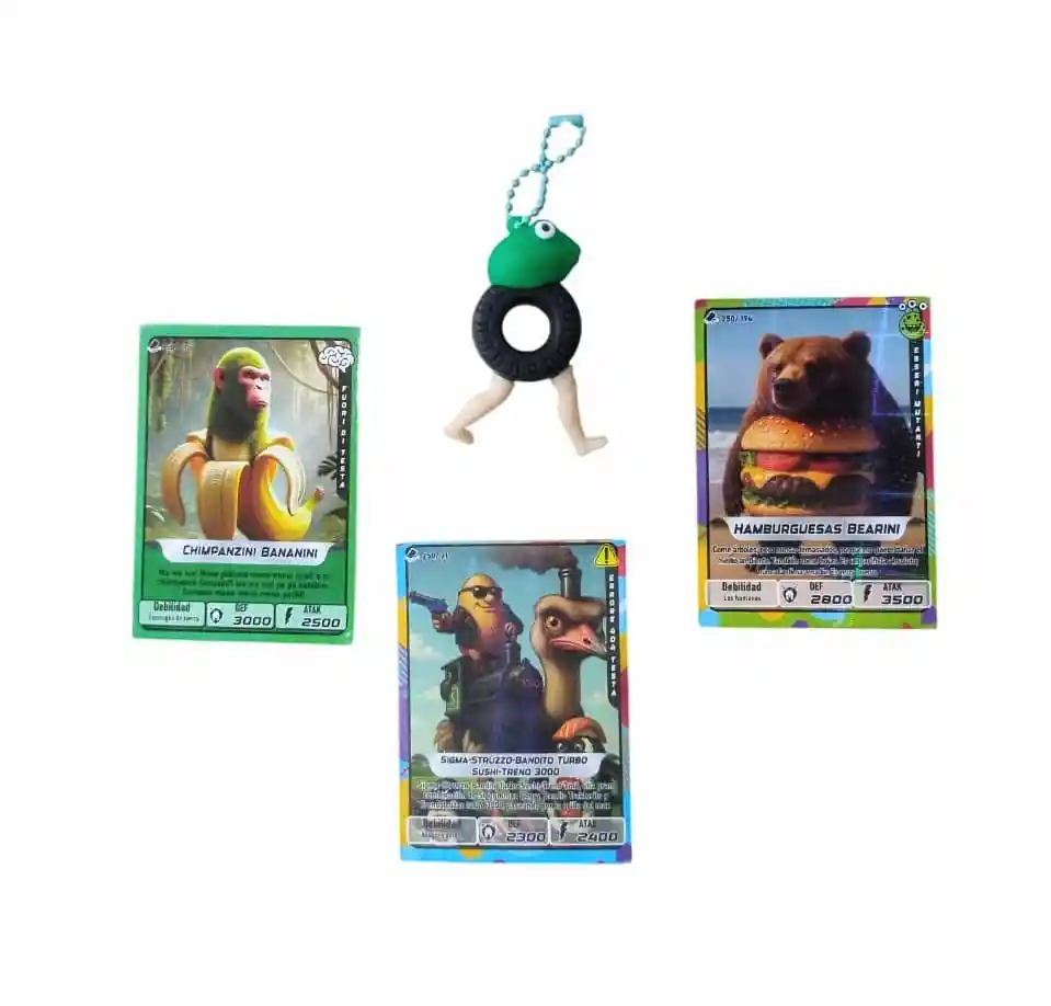 Figura + cartas tralalero tralala brainrot italiano 1 sobre de 3 cartas más 1 figura aleatoria de 4 cm