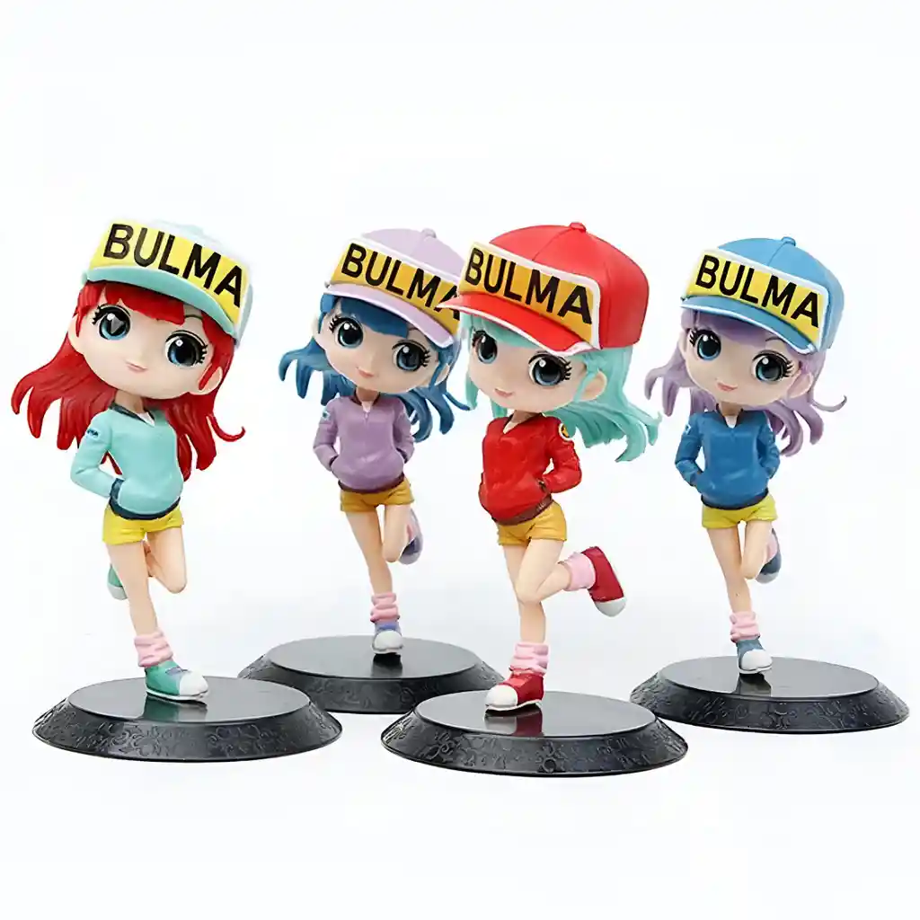 Set de figuras coleccionables estilo chibi de Bulma, personaje icónico de Dragon Ball, presentadas con un look moderno y colorido que incluye gorra con su nombre, sudadera, shorts y zapatillas. Cada figura cuenta con diferentes combinaciones de colores en cabello y vestimenta, lo que las hace únicas y atractivas para los fanáticos. Con un diseño encantador y lleno de detalles, estas figuras son ideales para decorar, coleccionar o regalar a seguidores del anime. Ficha Técnica: Dimensiones: 13 cm x 6 cm x 6 cm Material: Plástico PVC Edad Recomendada: + 6 años Referencia: WFW65 Certificado de conformidad: E5-0359-2021 ** _Para defectos de fábrica o retractos: \_Por favor revise el producto apenas lo reciba y antes de usarlo. No aplican ley de retracto o defectos de fábrica luego de usar el producto. Se manejan máximo 5 días para reportar defectos de fábrica (por ejemplo, producto funciona mal, piezas faltantes, rotas, etc). Para hacer efectiva la devolución el producto debe devolverse con el empaque original, el cual debe estar en buen estado, incluir todos los documentos y las partes completas y sin daños.