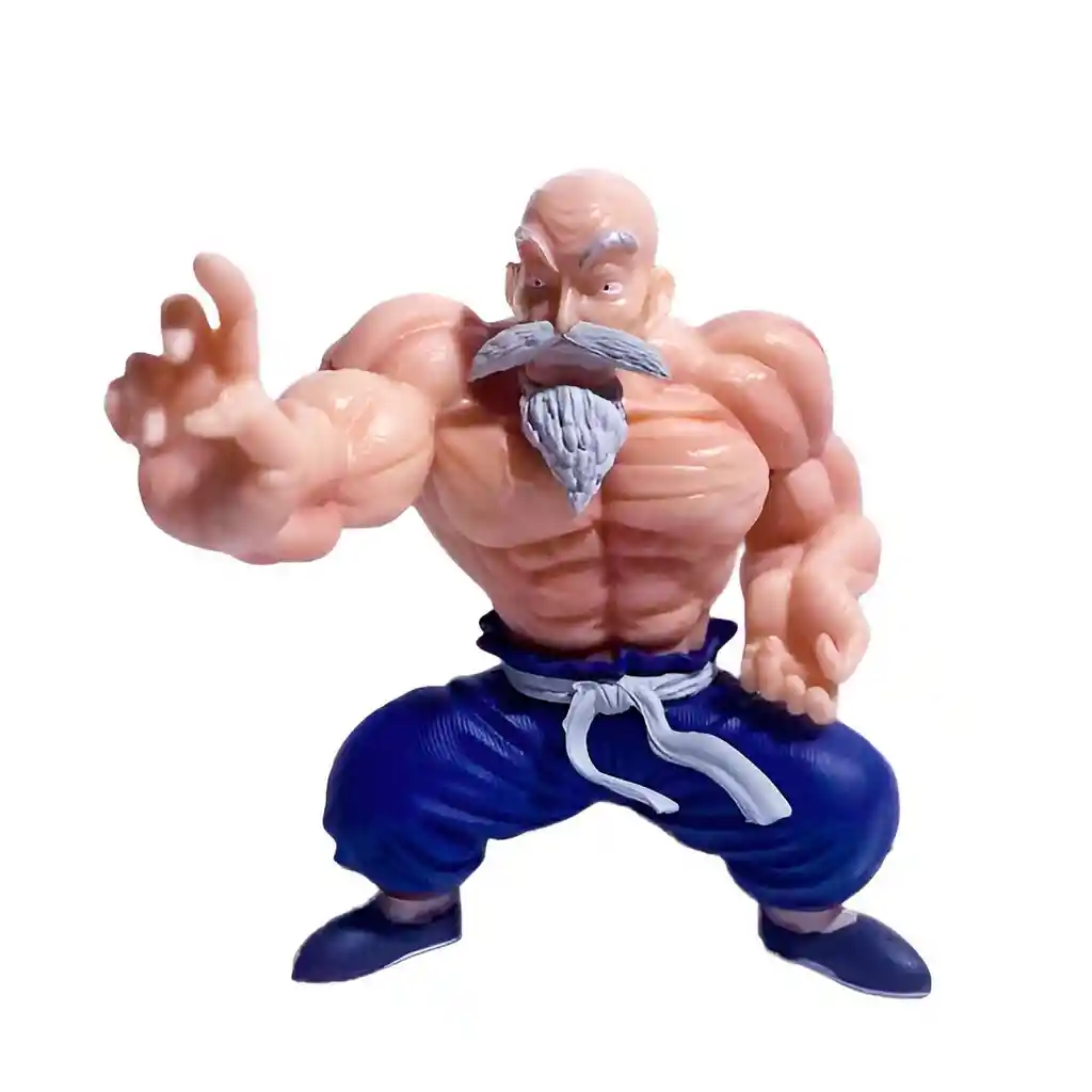 Figura coleccionable del Maestro Roshi en su versión musculosa, capturado en plena acción con una pose de combate que resalta su fuerza y determinación; presenta un acabado detallado en su barba, expresión seria y vestimenta clásica de artes marciales, convirtiéndose en una pieza imprescindible para los fanáticos de Dragon Ball que desean tener en su colección al legendario maestro en uno de sus momentos más poderosos. Ficha Técnica: Dimensiones: 10 cm x 10 cm x 9 cm Material: Plástico PVC Edad Recomendada: + 6 años Referencia: FWTS-51 Certificado de conformidad: E5-0359-2021 ** _Para defectos de fábrica o retractos: \_Por favor revise el producto apenas lo reciba y antes de usarlo. No aplican ley de retracto o defectos de fábrica luego de usar el producto. Se manejan máximo 5 días para reportar defectos de fábrica (por ejemplo, producto funciona mal, piezas faltantes, rotas, etc). Para hacer efectiva la devolución el producto debe devolverse con el empaque original, el cual debe estar en buen estado, incluir todos los documentos y las partes completas y sin daños.