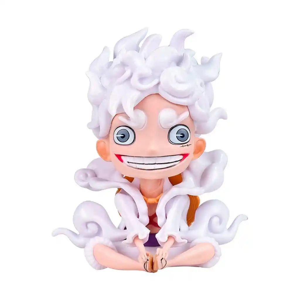 Figura coleccionable de Monkey D. Luffy en su transformación Gear 5, diseñada en un estilo chibi con una gran sonrisa característica, cabello blanco ondulado y detalles en forma de nubes que envuelven su cuerpo, representando el poder y la energía de esta forma; una pieza divertida y llena de personalidad que captura uno de los momentos más épicos de One Piece, ideal para los fanáticos que buscan añadir a su colección una versión única y carismática del capitán de los Sombrero de Paja. Ficha Técnica: Dimensiones: 13 cm x 10 cm x 10 cm Material: Plástico PVC Edad Recomendada: + 6 años Referencia: WFW17 Certificado de conformidad: E5-0359-2021 ** _Para defectos de fábrica o retractos: \_Por favor revise el producto apenas lo reciba y antes de usarlo. No aplican ley de retracto o defectos de fábrica luego de usar el producto. Se manejan máximo 5 días para reportar defectos de fábrica (por ejemplo, producto funciona mal, piezas faltantes, rotas, etc). Para hacer efectiva la devolución el producto debe devolverse con el empaque original, el cual debe estar en buen estado, incluir todos los documentos y las partes completas y sin daños.