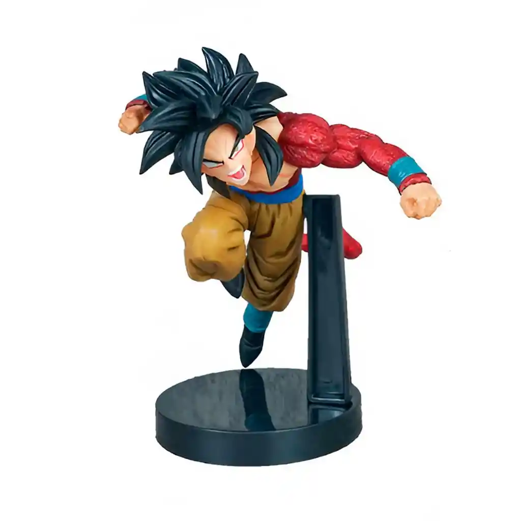 Figura coleccionable de Gokú en su transformación Super Saiyajin 4, diseñada en una pose de ataque dinámica que resalta su energía y poder, con acabados detallados en su cabello, vestimenta y musculatura; una pieza imprescindible para los fanáticos de Dragon Ball GT que buscan añadir a su colección uno de los momentos más icónicos y poderosos del personaje. Ficha Técnica: Dimensiones: 22 cm x 13 cm x 8 cm Material: Plástico PVC Edad Recomendada: + 6 años Referencia: FW08 Certificado de conformidad: E5-0359-2021 ** _Para defectos de fábrica o retractos: \_Por favor revise el producto apenas lo reciba y antes de usarlo. No aplican ley de retracto o defectos de fábrica luego de usar el producto. Se manejan máximo 5 días para reportar defectos de fábrica (por ejemplo, producto funciona mal, piezas faltantes, rotas, etc). Para hacer efectiva la devolución el producto debe devolverse con el empaque original, el cual debe estar en buen estado, incluir todos los documentos y las partes completas y sin daños.