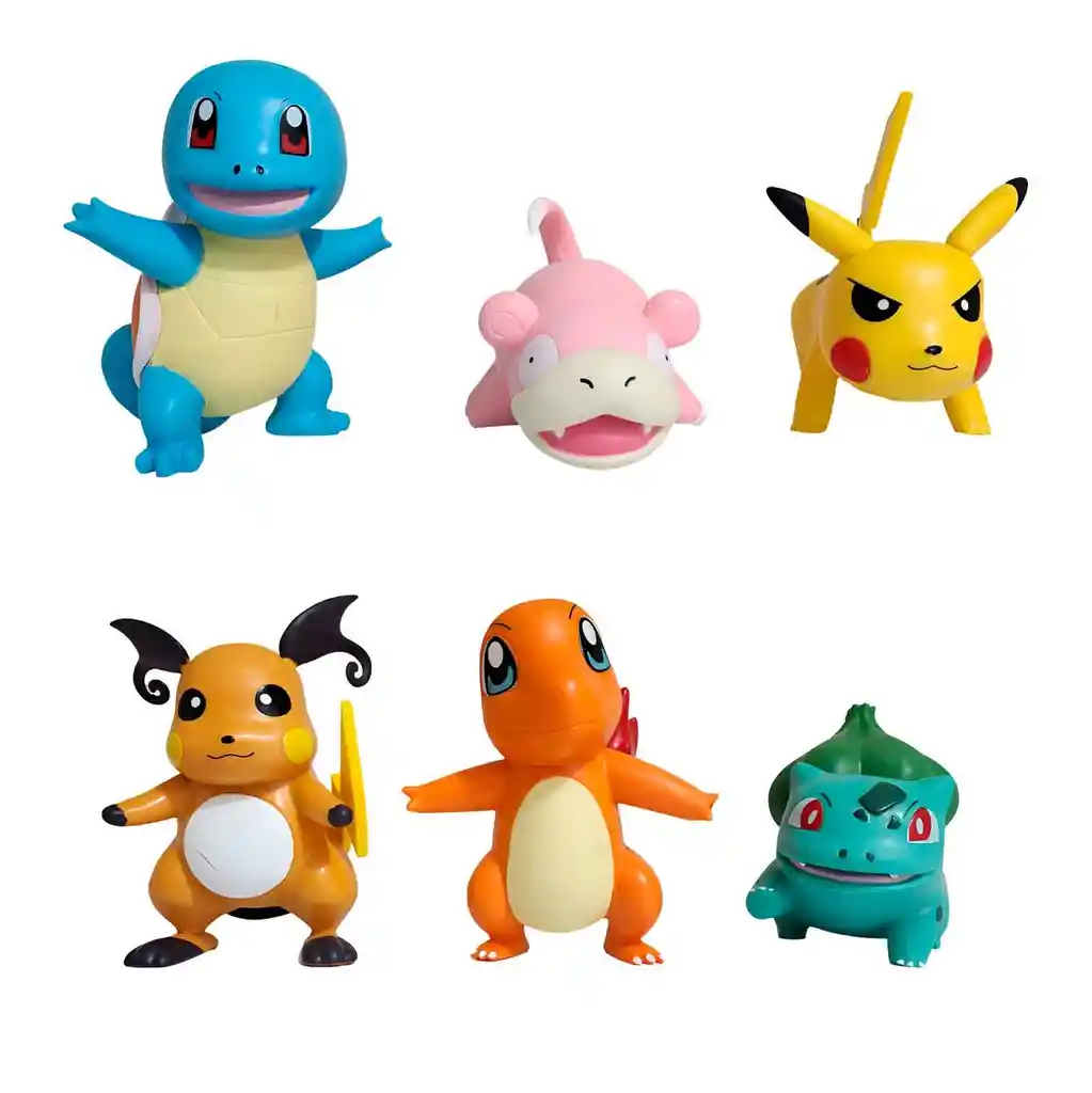 Set de figuras coleccionables inspirado en Pokémon, compuesto por divertidos personajes como Pikachu, Raichu, Charmander, Squirtle, Bulbasaur y Slowpoke, elaborados con materiales resistentes y acabados coloridos que capturan fielmente su esencia; ideales para fanáticos que desean revivir la nostalgia de la serie, decorar su espacio o ampliar su colección con un conjunto llamativo y lleno de personalidad. Ficha Técnica: Dimensiones: 16 cm x 12 cm x 8 cm Material: Plástico PVC Edad Recomendada: + 6 años Referencia: FW-TS35 Certificado de conformidad: E5-0359-2021 ** _Para defectos de fábrica o retractos: \_Por favor revise el producto apenas lo reciba y antes de usarlo. No aplican ley de retracto o defectos de fábrica luego de usar el producto. Se manejan máximo 5 días para reportar defectos de fábrica (por ejemplo, producto funciona mal, piezas faltantes, rotas, etc). Para hacer efectiva la devolución el producto debe devolverse con el empaque original, el cual debe estar en buen estado, incluir todos los documentos y las partes completas y sin daños.
