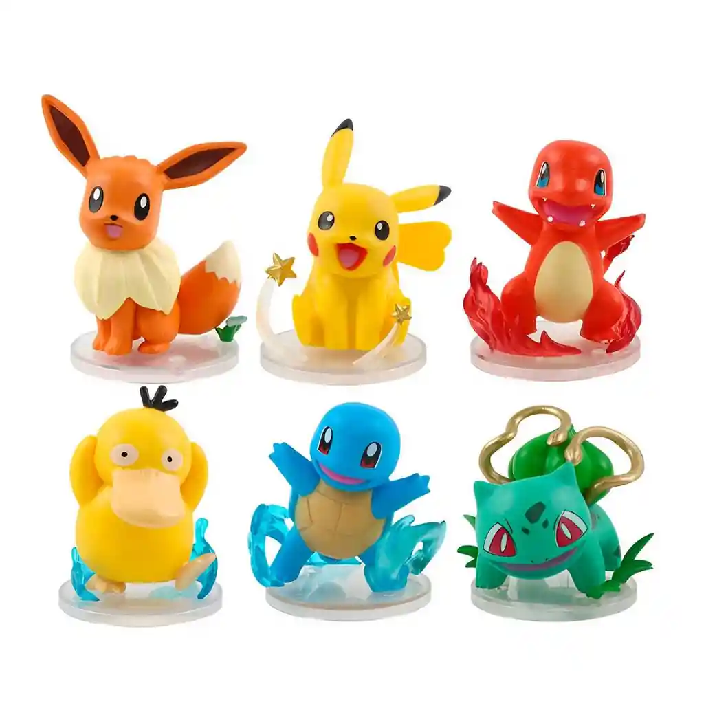 Set de figuras coleccionables de Pokémon con un diseño colorido y dinámico que incluye a Pikachu, Charmander, Squirtle, Bulbasaur, Eevee y Psyduck, cada uno en poses adorables y con detalles que representan sus características más icónicas; una colección perfecta para fanáticos que desean tener a algunos de los Pokémon más queridos y representativos en versiones llenas de energía y encanto. Ficha Técnica: Dimensiones: 7 cm x 4 cm x 4 cm Material: Plástico PVC Edad Recomendada: + 6 años Referencia: FW-TS47 Certificado de conformidad: E5-0359-2021 ** _Para defectos de fábrica o retractos: \_Por favor revise el producto apenas lo reciba y antes de usarlo. No aplican ley de retracto o defectos de fábrica luego de usar el producto. Se manejan máximo 5 días para reportar defectos de fábrica (por ejemplo, producto funciona mal, piezas faltantes, rotas, etc). Para hacer efectiva la devolución el producto debe devolverse con el empaque original, el cual debe estar en buen estado, incluir todos los documentos y las partes completas y sin daños.