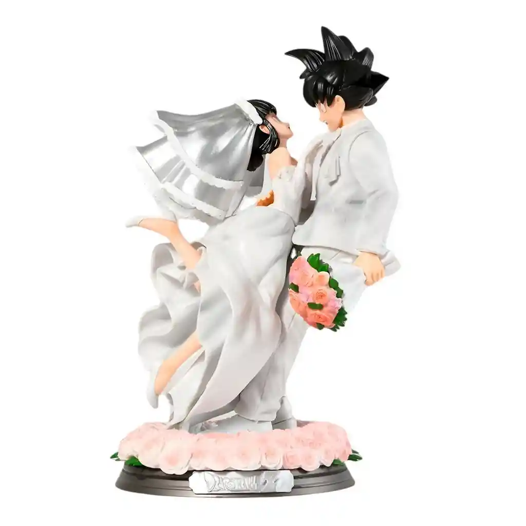 Figura coleccionable inspirada en un momento icónico de Dragon Ball, que muestra a Goku y Milk en su boda. La pieza está elaborada con gran detalle, representando a la pareja con trajes nupciales: él con un elegante esmoquin blanco sosteniendo un ramo de rosas y ella con un vestido de novia con velo. La base está decorada con un anillo de flores en tonos rosados que realzan la escena romántica. Es un artículo ideal para fanáticos y coleccionistas, perfecto para exhibir como pieza decorativa que celebra el amor y uno de los momentos más memorables de la serie. Ficha Técnica: Dimensiones: 30 cm x 16 cm x 16 cm Material: Plástico PVC Edad Recomendada: + 3 años Referencia: FW62 Certificado de conformidad: E5-0359-2021 ** _Para defectos de fábrica o retractos: \_Por favor revise el producto apenas lo reciba y antes de usarlo. No aplican ley de retracto o defectos de fábrica luego de usar el producto. Se manejan máximo 5 días para reportar defectos de fábrica (por ejemplo, producto funciona mal, piezas faltantes, rotas, etc). Para hacer efectiva la devolución el producto debe devolverse con el empaque original, el cual debe estar en buen estado, incluir todos los documentos y las partes completas y sin daños.
