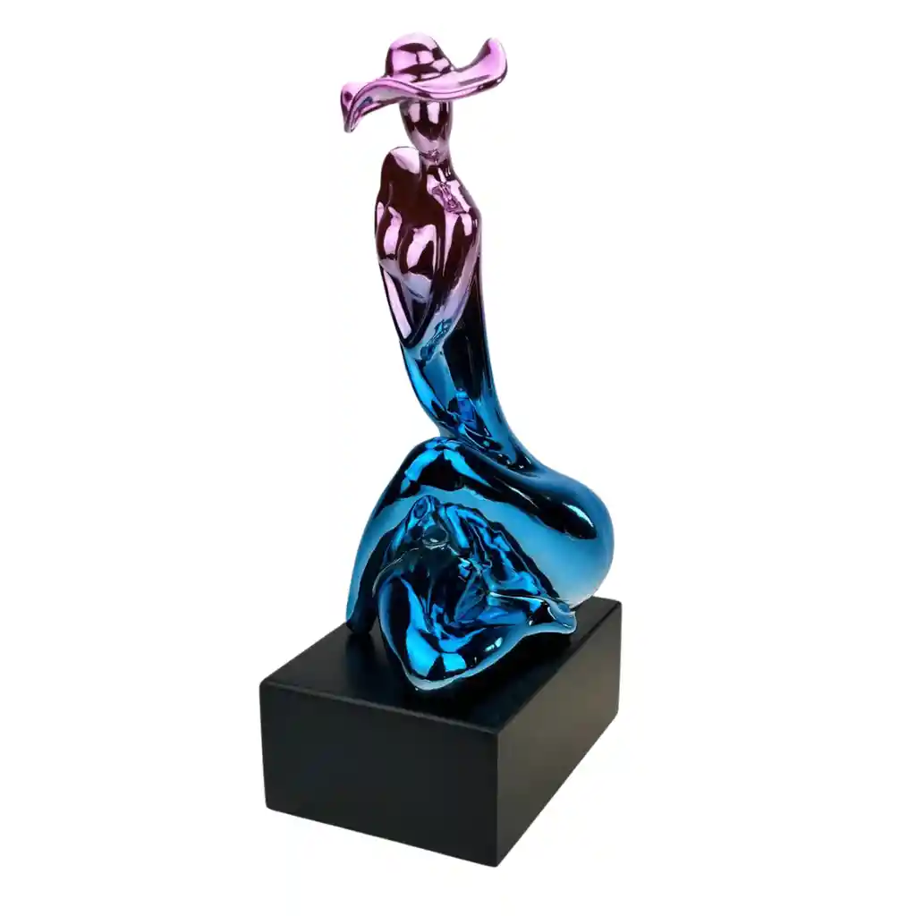 Figura decorativa en porcelana vitrificada con acabado tornasol brillante, ideal para dar un toque moderno y luminoso a la decoración del hogar. Su efecto iridiscente refleja la luz con elegancia, creando ambientes sofisticados en sala, comedor o dormitorio. Mide 42×20×14 cm y es perfecta para quienes buscan una pieza decorativa contemporánea y llena de estilo.
