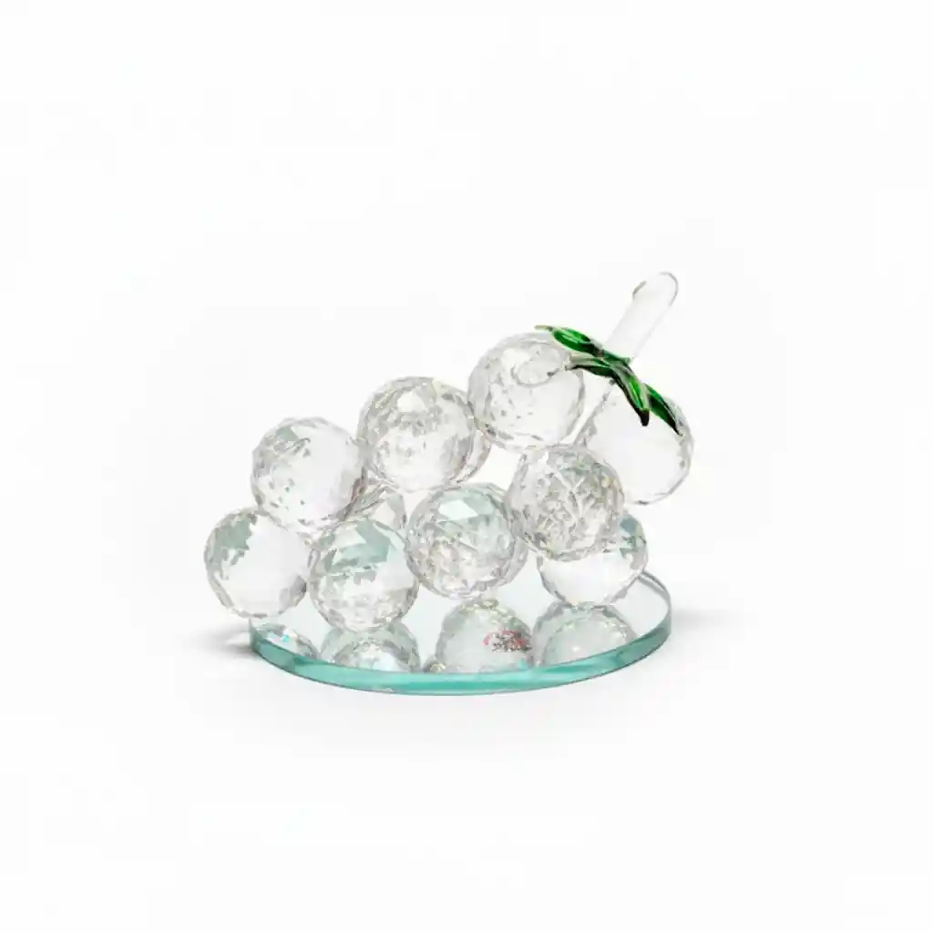 Diseño de ramo de uvas en cristal swarovski: representación clásica de la abundancia y la prosperidad en el hogar.. Hecho a mano artesanalmente: cada "uva" y hoja es soplada y modelada individualmente por maestros vidrieros.. Brillo y transparencia cautivadores: el cristal capta la luz, creando destellos y reflejos vibrantes.. Ideal como centro de mesa: perfecto para exhibir en un frutero decorativo o como pieza única en un aparador.. Material de Cristal Duradero: Resistente y fácil de mantener, garantizando una belleza que perdura.. Estilo clásico italiano: un detalle que comunica buen gusto y una apreciación por la artesanía europea.. Regalo sofisticado y original: un obsequio memorable para amantes del vino, la decoración de lujo o la cultura italiana.. Resistente a la humedad: apto para ubicar en áreas con algo de humedad sin riesgo de deterioro.. Fácil limpieza y mantenimiento: el cristal liso se limpia con facilidad para mantener su brillo intacto.. Base estable y segura: diseñada para una exhibición firme en escritorios, repisas o mesas de centro.