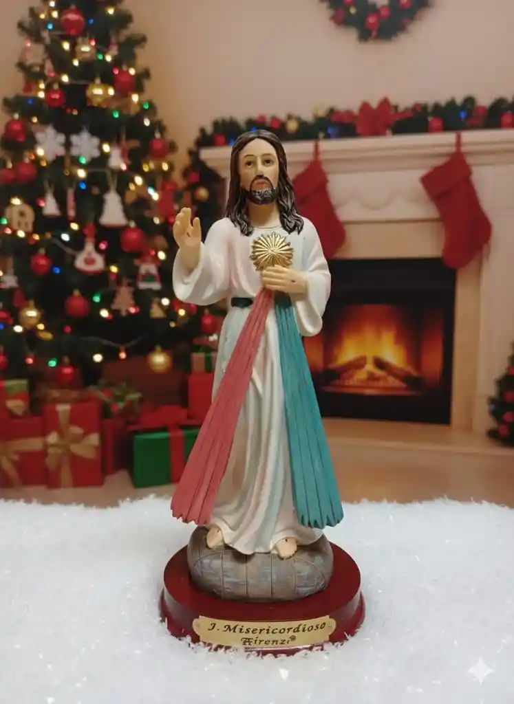 ✝️ Figura Religiosa Jesús Misericordioso 21 cm – Porcelana Italiana Firenzi Una hermosa y detallada representación de Jesús Misericordioso, elaborada en fina Porcelana Italiana Firenzi, ideal para quienes desean una pieza elegante, espiritual y de alta calidad para su hogar o altar. Con una altura de 21 cm, esta figura destaca por su acabado delicado, colores suaves y expresión de paz, convirtiéndola en un símbolo perfecto de fe y protección. ⭐ Características destacadas: ✨ Material: Porcelana Italiana Firenzi 📏 Altura: 21 cm 🎨 Acabados finos y pintura artesanal 🙏 Imagen de Jesús Misericordioso con detalles realistas 🏠 Ideal para altares, hogares, capillas y decoración religiosa 🎁 Perfecta como regalo espiritual o de devoción 🌟 Un símbolo de fe y esperanza Esta figura transmite serenidad y protección, siendo una pieza especial para quienes buscan fortalecer su espiritualidad con una imagen de calidad superior.