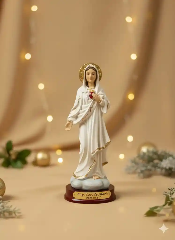 Figura Religiosa Virgen Sagrado Corazón de María 20 cm – Porcelana Italiana Firenzi ✨ Una pieza llena de fe, belleza y delicadeza. Esta figura de la Virgen del Sagrado Corazón de María está elaborada en porcelana italiana Firenzi, reconocida por su excelente calidad y acabados artesanales. Su expresión serena y detalles cuidadosamente pintados la convierten en una pieza ideal para decorar tu hogar o para regalar en momentos especiales. Características 🕊️✨ 📏 Altura: 20 cm 🏺 Material: Porcelana italiana de alta calidad 🖌️ Acabado: Detalles finos y pintura delicada 💛 Diseño: Representación del Sagrado Corazón de María 🏡 Ideal para: Altares, espacios de oración y decoración espiritual 🎁 Perfecta como regalo de fe y protección 🌟 Marca: Firenzi, reconocida por su arte y tradición
