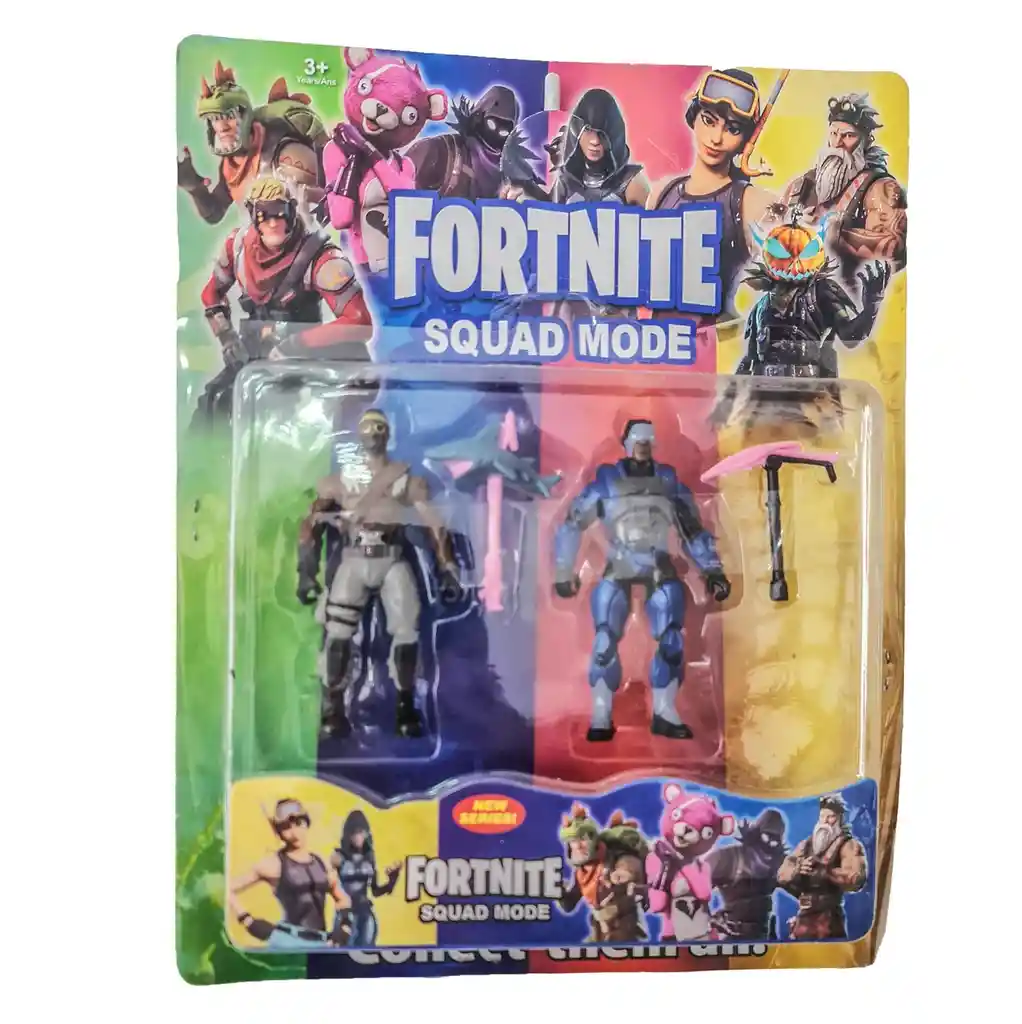 Hermosas Figuras del divertido juego Fortnite, en el pack vienen 2 figuras cada una con sus respectivos objetos. Ficha Técnica: Dimension de cada figura ( Alto x Ancho ) : 10 cm x 4 cm Material : Plastico edad apta: desde los 3 años en adelante Referencia: F1310-1 Certificado de conformidad: E5-0359-2021 ** _Para defectos de fábrica o retractos: \_Por favor revise el producto apenas lo reciba y antes de usarlo. No aplican ley de retracto o defectos de fábrica luego de usar el producto. Se manejan máximo 5 días para reportar defectos de fábrica (por ejemplo, producto funciona mal, piezas faltantes, rotas, etc). Para hacer efectiva la devolución el producto debe devolverse con el empaque original, el cual debe estar en buen estado, incluir todos los documentos y las partes completas y sin daños.