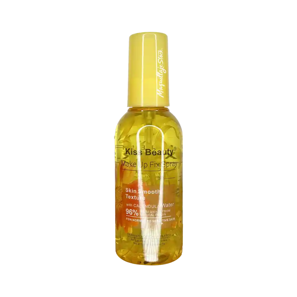 Bruma fijadora de caléndula Usalo sobre maquillaje como fijador o sin maquillaje como tónico. Textura de piel suave, con agua de caléndula, 96% de ingredientes de origen natural para pieles normales a sensibles. Testeado dermatológicamente sin parabenos, sin siliconas ni colorantes artificiales. Mega hidratante, ligero y de fácil absorción, mantiene la piel sedosa y suave, excelente preparador para maquillaje libera humedad y emolientes sobre la piel continuamente durante todo el día. Aumenta la hidratación para una apariencia suave como la seda y no reseca la piel.