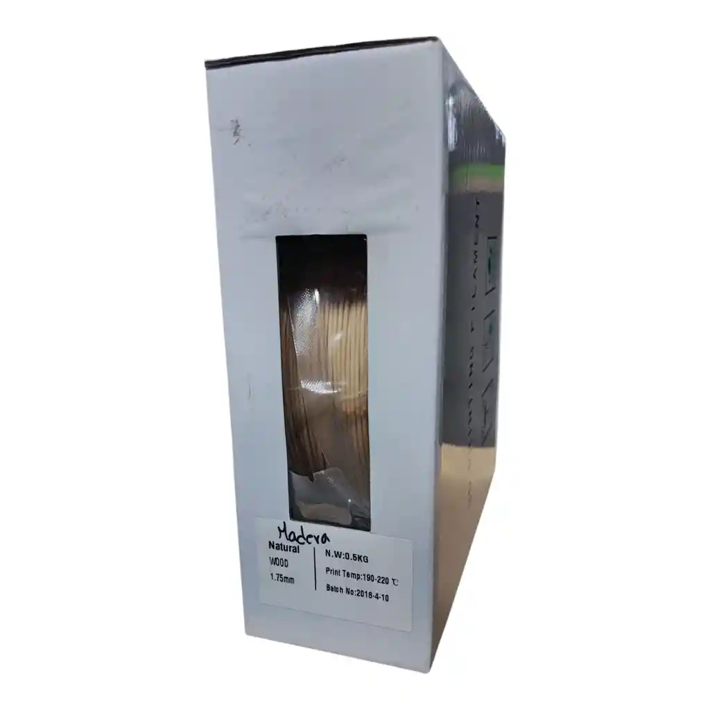 Filamento de Madera 1KG - PLA+ con Fibras de Madera El Filamento de Madera está compuesto por PLA con fibras de madera, permitiendo fabricar piezas con un acabado similar a la madera real. Su facilidad para el postprocesado lo convierte en un material ideal para la impresión 3D de elementos decorativos, siendo ampliamente utilizado en arquitectura y diseño. Composición y Propiedades: Mezcla de Materiales: Aproximadamente 60% auténtica madera y PLA+ Textura Realista: Superficie lijable, pintable y trabajable como madera Acabado Personalizable: Brillo y texturas ajustables con temperatura Resistencia y Calidad: Baja contracción y alta estabilidad dimensional Compatibilidad: No requiere cama caliente y se adhiere bien a la base Especificaciones Técnicas: Diámetro: 1,75 mm (Precisión: 1,7-1,8 mm) Temperatura de impresión recomendada: ~190°C Postprocesado: Puede ser lijado, taladrado y teñido Biodegradable y no tóxico Recomendaciones de Uso: Evitar la humedad: Puede volverse quebradizo si se expone al agua Prevenir obstrucciones: El polvo puede afectar la impresión Mantenimiento: Retirar el material del extrusor tras la impresión para evitar residuos Este filamento es perfecto para quienes buscan un material versátil, con una estética natural y un acabado excepcional en sus impresiones 3D. LA COMPRA INCLUYE: 1x FILAMENTO PLA MADERA WOOD 1.75mm 0.5KG 1LB 500 gr