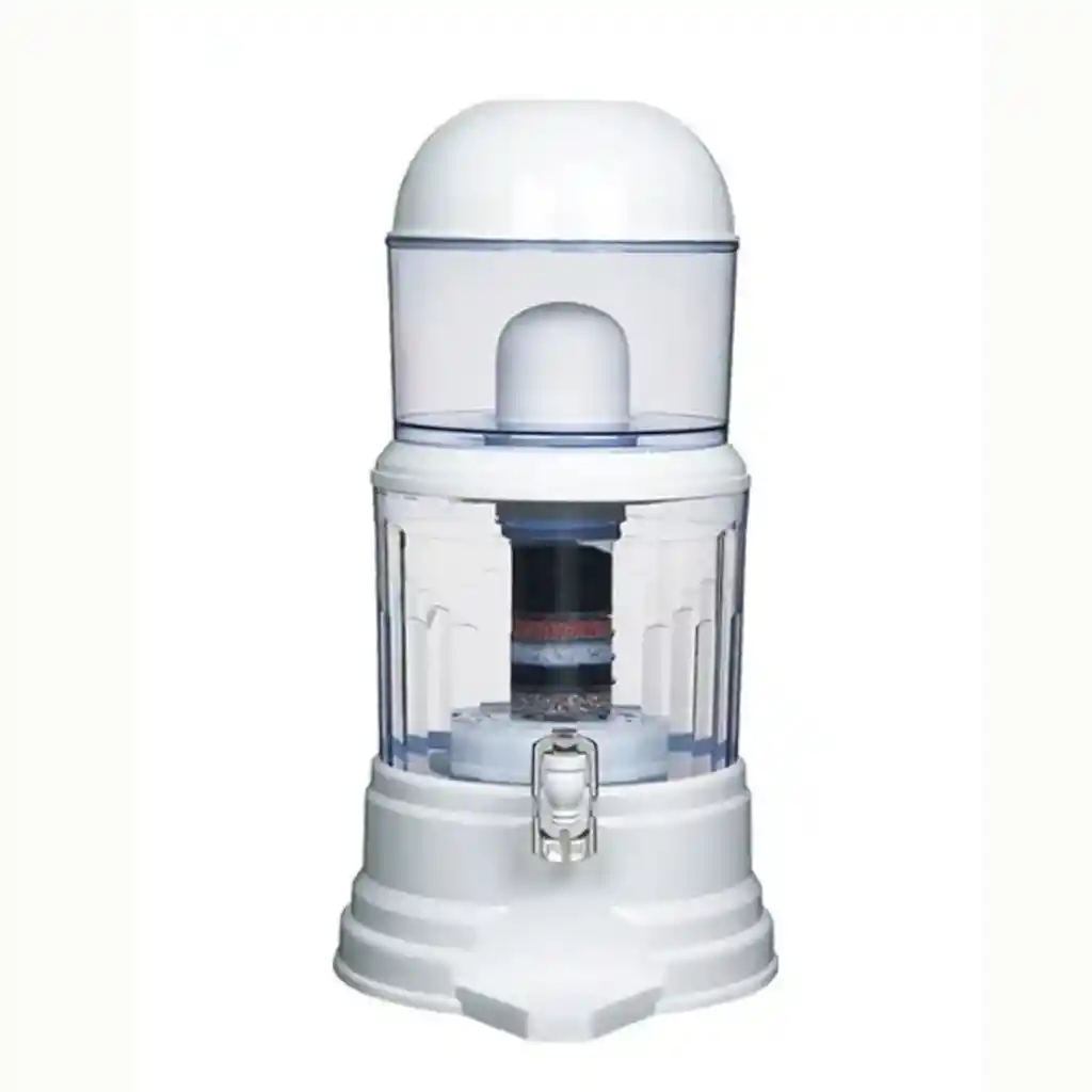 Este filtro es hecho de una sustancia diatomácea altamente comprimida que hace que sus poros tengan un tamaño de 0.2 micras. Propiedad que le permite retener bacterias; las cuales tienen un diámetro entre 0.5 y 1.0 micras. Este filtro retiene todo el sedimento y partículas, bacterias para asegurar que el agua filtrada esté libre de enfermedades peligrosas como tifoidea, cólera y disentería. FILTRO MULTICAPAS: Este filtro está conformado por los siguientes cinco elementos: Carbón Activado: remueve el cloro y productos químicos. El resultado es un agua pura, cristalina y con agradable color y olor. WSM-300: poderoso material esterilizante, elimina cualquier bacteria y mantiene el pH del agua. Arena de Sílice: remueve los componentes ácidos del agua para mantener su balance de pH, conserva la temperatura, manteniendo el agua fría y fresca. Zeolita: remueve los metales pesados tales como plomo, aluminio los cuales son muy pe
