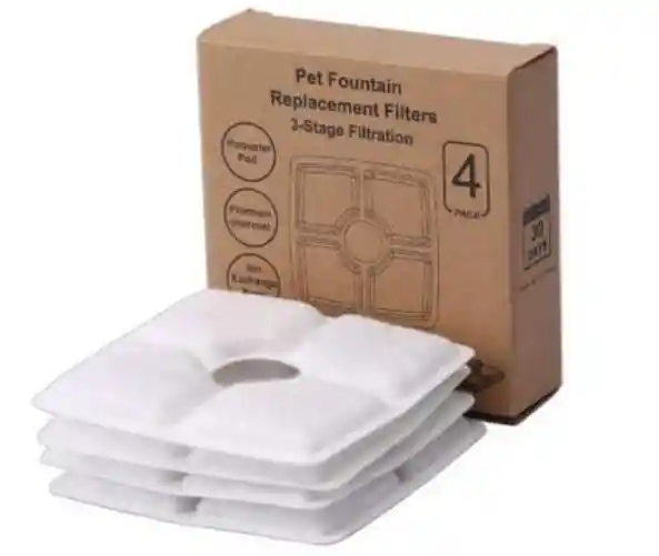 Marca Pet Fountain Modelo Filtro Cuadrado Diámetro 12 cm Largo x Ancho x Altura 12 cm x 12 cm x 1 cm Otras características Tipo de producto: Bebedero Material: Poliéster Descripción Filtro para Bebedero para Mascotas, 4PCS Filtros de Repuesto de Carbón Activado para Fuente Cuadrada Automática para Gato Perro