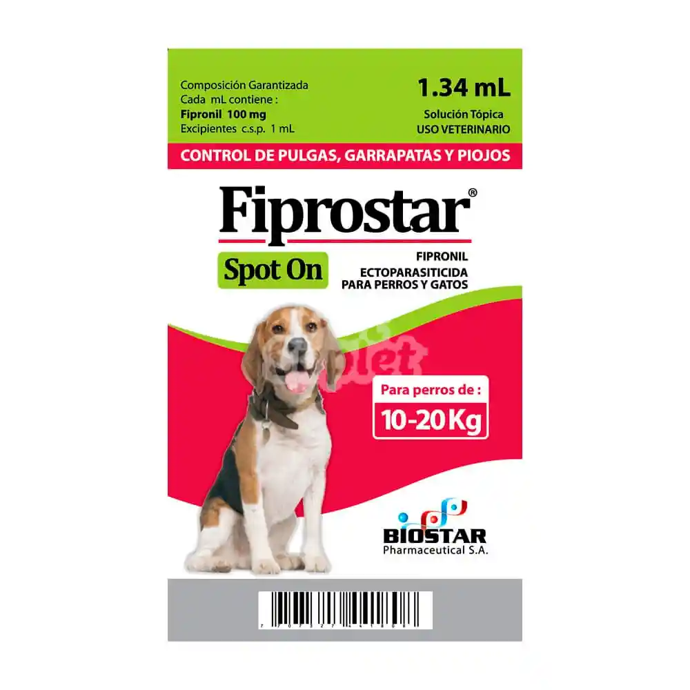 FIPROSTAR® SPOT ON es un compuesto fenilpirazólico usado como agente antiparasitario externo, para el control de pulgas, piojos, ácaros y garrapatas en perros.