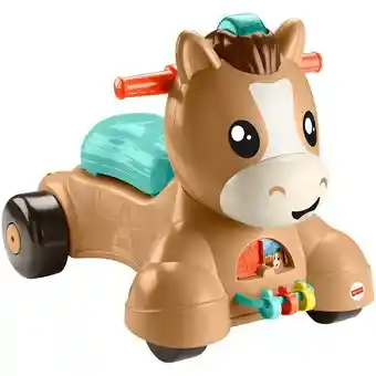 ¡Vamos a pasear, amigo! Los pequeños corredores de caballos pueden caminar, rebotar y salir a la puesta de sol con este dulce amigo pony, cantar una canción y compartir una o dos manzanas. Con luces coloridas y canciones y sonidos divertidos, tu bebé podrá caminar y pontar este amigo por años. ¡Vamos a dar un paseo! La base de 4 ruedas ayuda a dar esos primeros pasitos de forma estable. Juguetes divertidos como manzanas que hacen click o un deslizador peek-a-boo. Guarda el asa debajo del asiento para que tu pequeño se divierta montándolo.