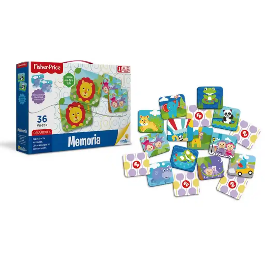 juego original de fisher priceencuentra la pareja correcta, entre más pares de fichas encuentres ganasdesarrolla capacidad de asociación, ubicación espacial, concentracióncontiene 36 fichastamaño de la ficha 7.8 cms x 6.8 cms