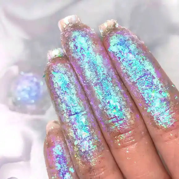 Flake multicromatico!!! Es la combinación de todos nuestros flakes traslucidos Color Flake traslucido azul con visos lila. Contenido 0.5 -1 gr (depende de la densidad y consistencia de cada color)
