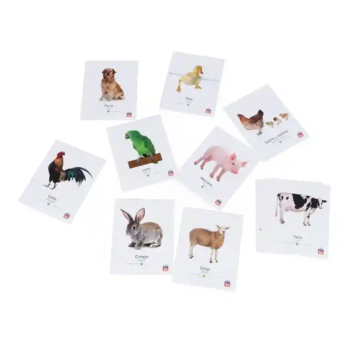 18 Flashcards con fotografías reales de animales de la granja Edad recomendada: + 6 meses Las fotografías en los primeros años, permiten a los niños tener una imagen de los objetos más cercana a la realidad. Con las Flashcards Animales de la Granja, puedes jugar a las historias, los sonidos y los movimientos de los animales de la granja, favoreciendo el aumento del repertorio comunicativo, preparando elementos necesarios del desarrollo del lenguaje y ayudando a tus niños en su desarrollo corporal a través del juego simbólico. Adicionalmente, tienen el nombre de los animales escritos en inglés y español, para que puedan usarse cuando estén en sus procesos de lecto-escritura. Incluye: 12 tarjetas de fotografías de animales reales: Perro, vaca, gato, conejo, gallo, pato, caballo, loro, gallina y pollito, marrano, oveja, pájaro Nombres en español e inglés 1 tarjeta en blanco para dibujar y escribir con marcador borrable (marcador no incluido) Guía con +19 actividades desde los 6 meses hasta los 6 años, para jugar con los niños y desarrollar habilidades en todas las áreas. Empaque aprovechable como soporte de las flashcards. Bolsa en tela para proteger tus tarjetas y transportarlas fácilmente Especificaciones Material: Cartón grueso laminado especial para los más pequeños Idioma: Español e inglés Dimensiones: 10.5 x 13.5 cms