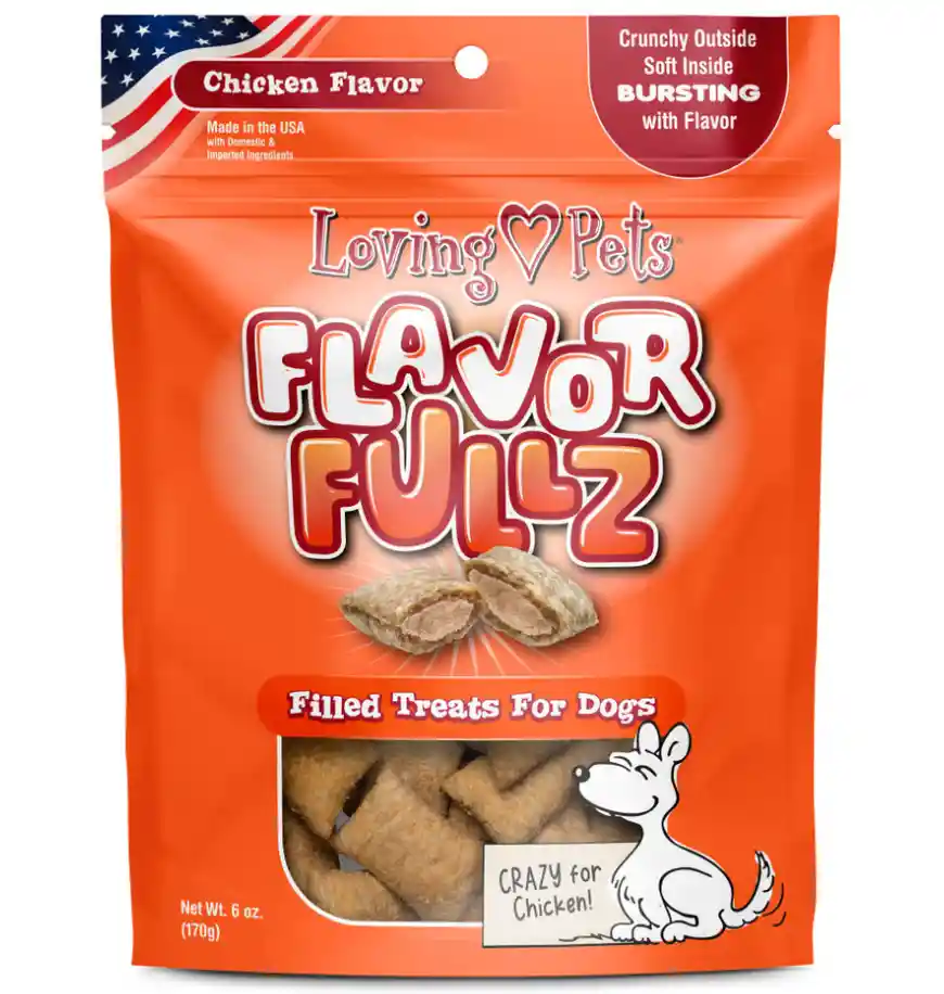 Los snacks rellenos Flavorfullz para perros son elaborados en Estados Unidos. Cada bolsa de 170 g es la opción perfecta para premiar a perros de todas las razas y tamaños. Puedes tener la tranquilidad de saber que estas golosinas saludables no contienen trigo ni maíz. Cada elemento se combina para crear un exterior crujiente y un interior suave que tu perro disfrutará muchísimo. Cada paquete de snacks incluye un análisis preciso y garantizado que te brinda un panorama completo del contenido de humedad, proteína cruda, fibra cruda y grasa cruda. Con este análisis, puedes tener la seguridad de que le estás dando golosinas seguras y saludables a tu perro.