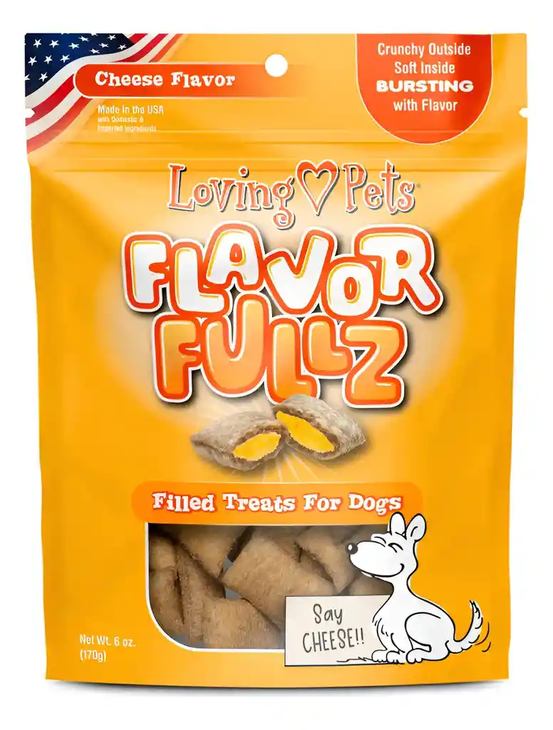 Snack relleno para perros con un peso neto de 170 g. Crujiente por fuera y suave por dentro, con sabor intenso a queso.