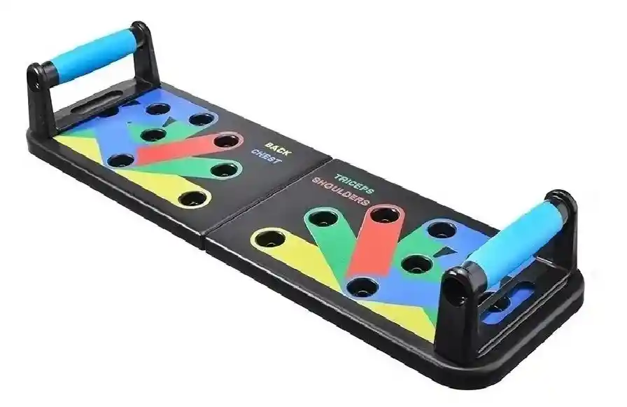 La Tabla Push Up para ejercicios, es la mejor herramienta para hacer los flexiones y ejercicios de manera mas eficiente logrando mejores resultados en corto tiempo. Inserta las empuñaduras de acuerdo con la zona a ejercitar según color Caracteristicas: - Diseño Moderno - Mango fuerte hecho de Polipropileno - Puede prevenir resbalones sin preocuparse por el sudor. - Cuerpo de placa de refuerzo - La parte inferior está reforzada - Resiste 100 kg. Modos de uso: Zona especifica a tratar por color: Zona amarilla: espalda Área azul: pectoral Zona verde: tríceps Zona roja: hombros Se entrega: 1 x Tablero plegable push Up para ejercicios 2 x Empuñaduras 1 x Manual de entrenamiento