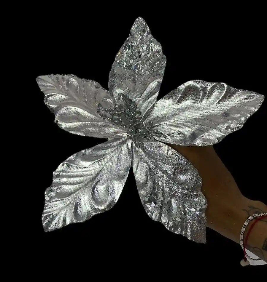 Flor Artificial Plateada De 24 Cm Para Arbol De Navidad Decoración Navideña