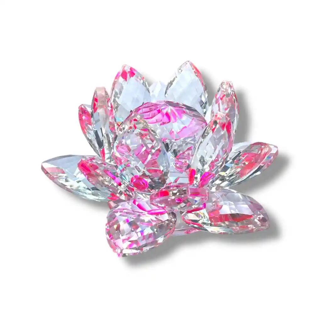 Flor de loto en cristal, símbolo de pureza y belleza 💎. Hecha a mano en cristal de alta calidad, disponible en varios colores y tamaños. Se dice que absorbe malas energías y atrae la positividad, perfecta para decorar tu espacio con elegancia y armonía. Ideal para regalar o como detalle especial.