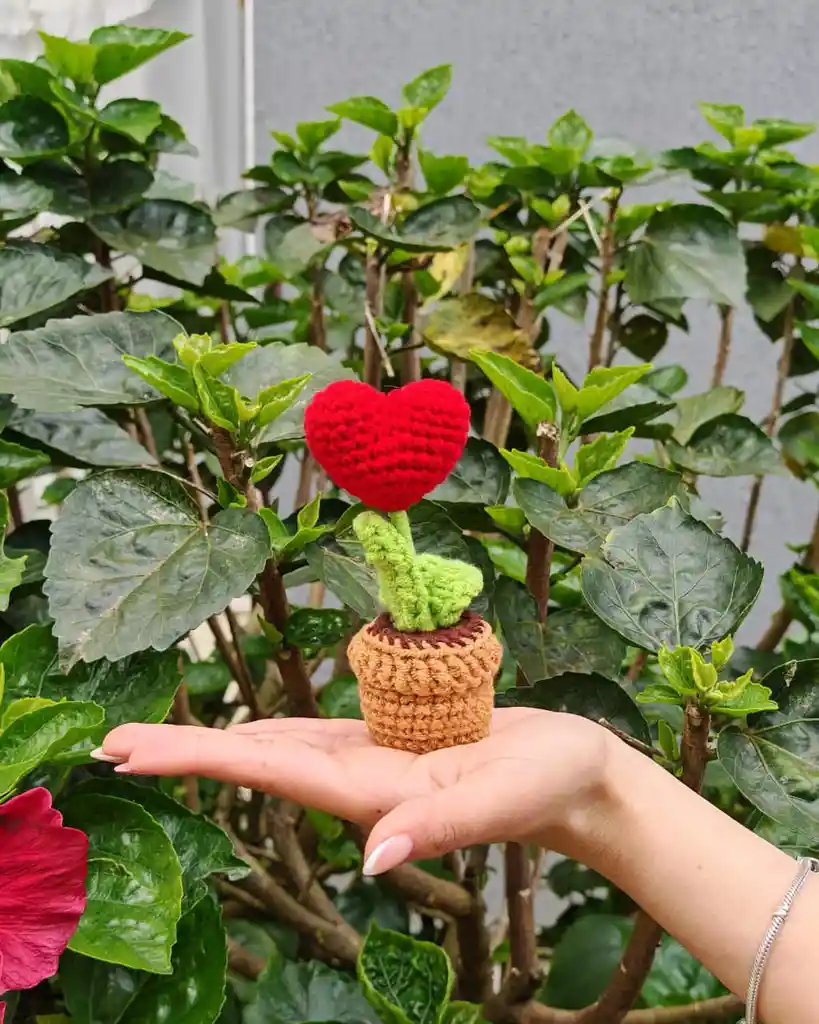 Delicada flor artesanal tejida en crochet con un hermoso diseño en forma de corazón. Un detalle único y duradero, ideal para regalar y expresar cariño en cualquier ocasión especial.