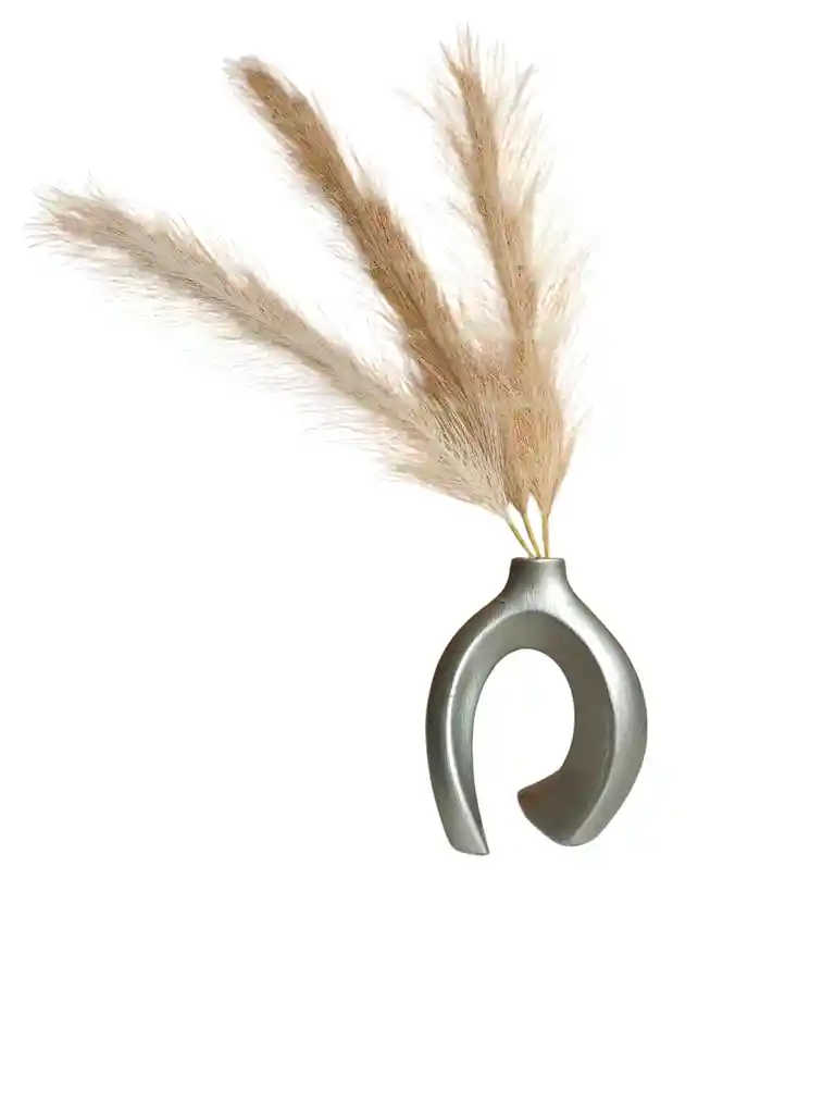hermoso florero plateado con plumas artificial resinado su medida es de 51 de alto