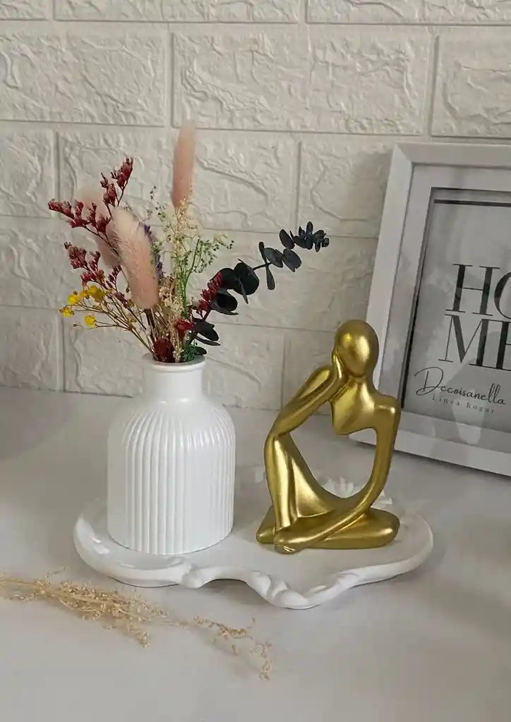 Incluye Florero bandeja escultura dorada