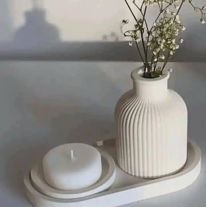 Florero, bandeja y portavela Material concreto color blanco el portavela tambien es funcional como porta incienso