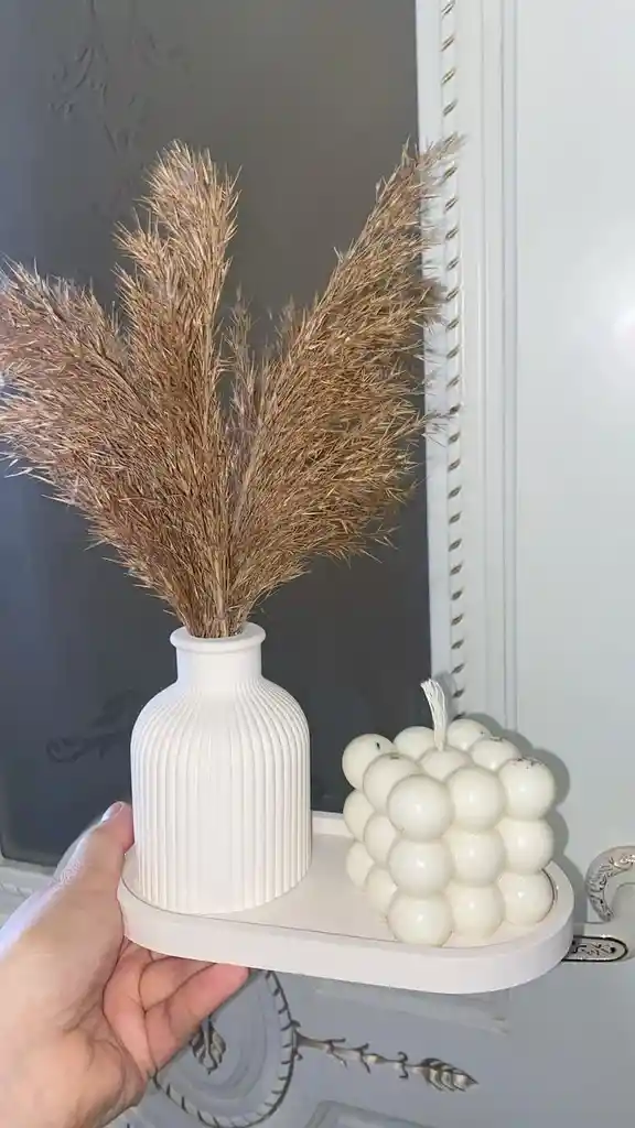Florero, bandeja y vela cubo