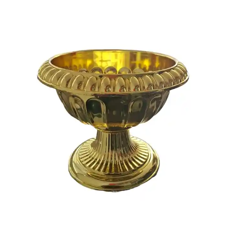 FLORERO PLASTICO DE COLOR DORADO Hermoso florero perfecto para tus decoraciones medidas alto:17cm ancho:22cm disponible para entrega inmediata Si deseas adicionar otros Artículos a tu compra puedes escribirnos, para poder ayudarte. somos de fiesta con lyly