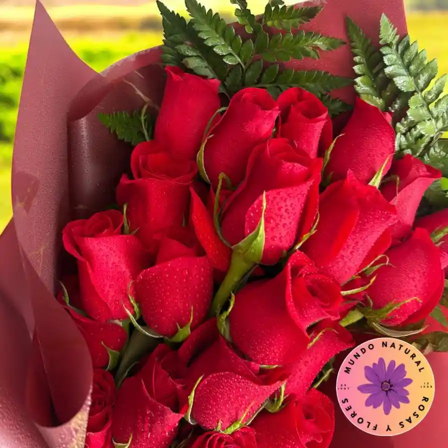 Una presentación impactante y sofisticada con 20 rosas rojas dispuestas en escala, creando un efecto visual de elegancia y profundidad. Cada rosa representa pasión, amor y fuerza, ideal para un mensaje que lo diga todo sin palabras