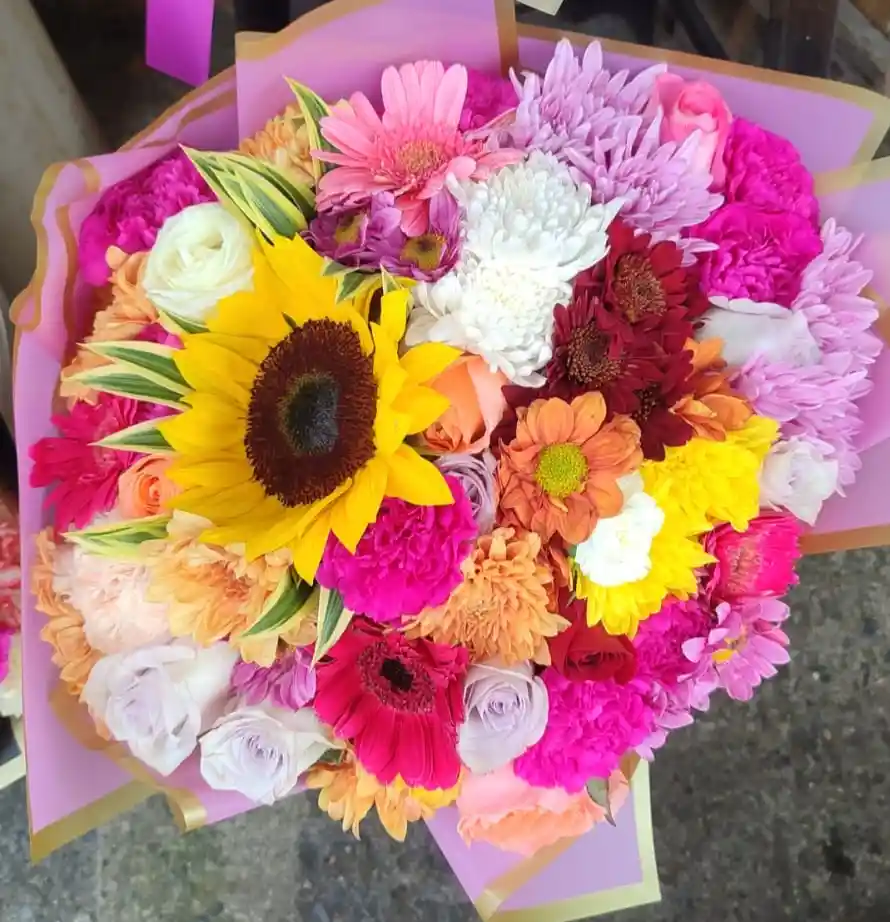 “Dale vida y alegría a cualquier momento con nuestro hermoso ramo combinado 🌸🌻🌹. Una explosión de colores vibrantes y flores frescas que transmiten amor, felicidad y energía positiva. 💐 Perfecto para regalar o alegrar tu espacio con su encanto natural. ¡Haz que cada detalle florezca con belleza!” 🌷💛