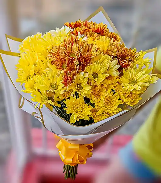 Bouquet de margaritas amarillas frescas, ideal para regalar el 31 de diciembre y atraer prosperidad, abundancia y nuevos comienzos en Año Nuevo. Las flores amarillas simbolizan éxito, energía positiva y buena fortuna, convirtiéndolas en el detalle perfecto para cerrar el año y comenzar uno nuevo con intención. ✔ Flores naturales ✔ Color amarillo intenso ✔ Ideal para rituales de Año Nuevo