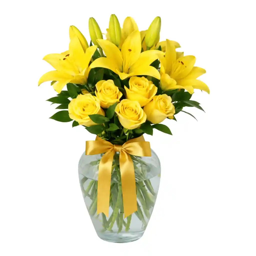 Un detalle fresco y lleno de vida que transmite pureza y alegría en cada flor. Este elegante arreglo incluye un jarrón de 30 cm con delicadas rosas blancas, tallos de lirios y follaje fresco, cuidadosamente combinados para crear una presentación armoniosa y sofisticada. Se complementa con un moño decorativo , ideal para expresar tus sentimientos en cualquier ocasión especial. 🌿🤍 REF: FLR01