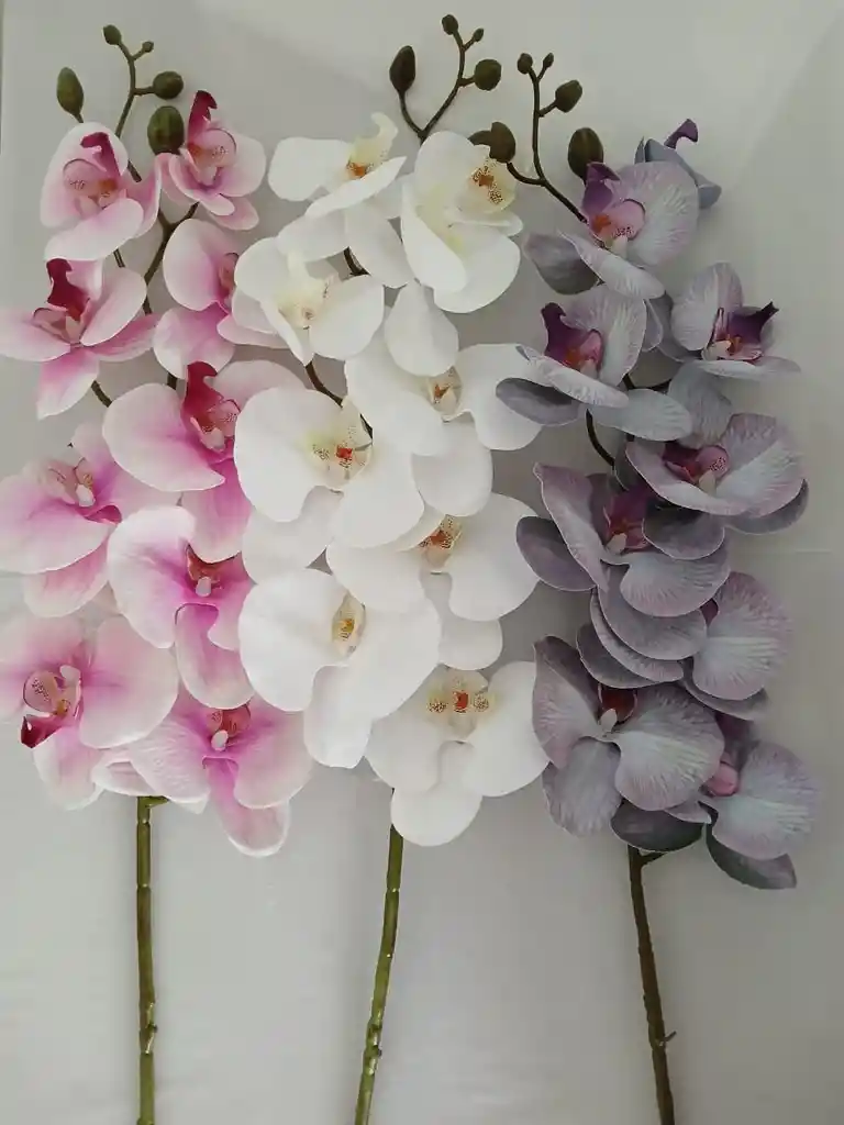 Orquídeas artificiales de tacto Real para el hogar, oficina, decoración de boda, Mesa. 3 colores Rosado, Blanco y Morado. medidas; 60 CM tallo (40 CM FLOR)