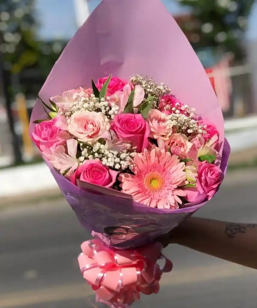 Un Regalo que Derrite el Corazón con su Delicadeza! 💐🌸 ¿Quieres sorprender a alguien especial con un regalo que sea una explosión de amor y ternura? Nuestro ramo de flores de color rosa es la opción perfecta. - Flores frescas y de alta calidad en tonos rosas suaves y delicados - Simbolizan amor, aprecio y gratitud - Arreglo único y personalizado para cada ocasión