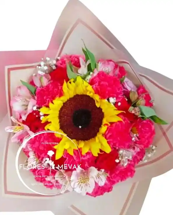 Hermosos bouquet de flores variadas entre claveles rosas girasol y follajes que hacen una combinación perfecta para alegrarle el día a esa persona especial