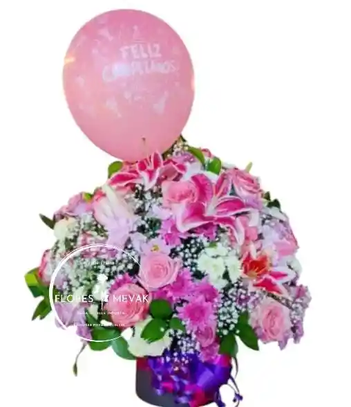 Hermoso arreglo de rosas rosadas y flores en tonos pastel en cilindro en forma de burbuja, un detalle perfecto para cualquier ocasión