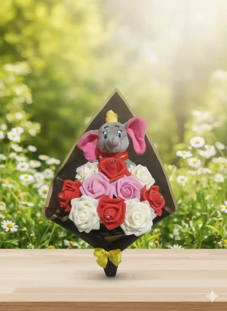 Ramo de 10 rosas eternas, acompañado de hermoso peluche.