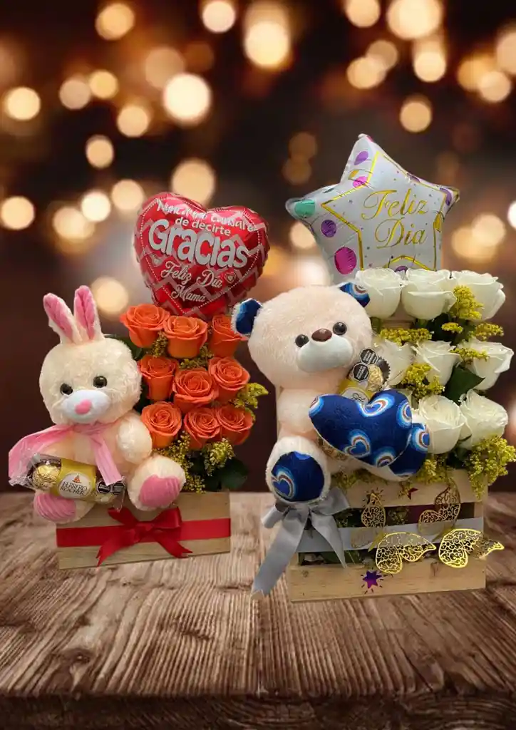Ramo De rosas Ferrero x 3 1 Globo Peluche Tarjeta Lazo Mariposas Base de Madera