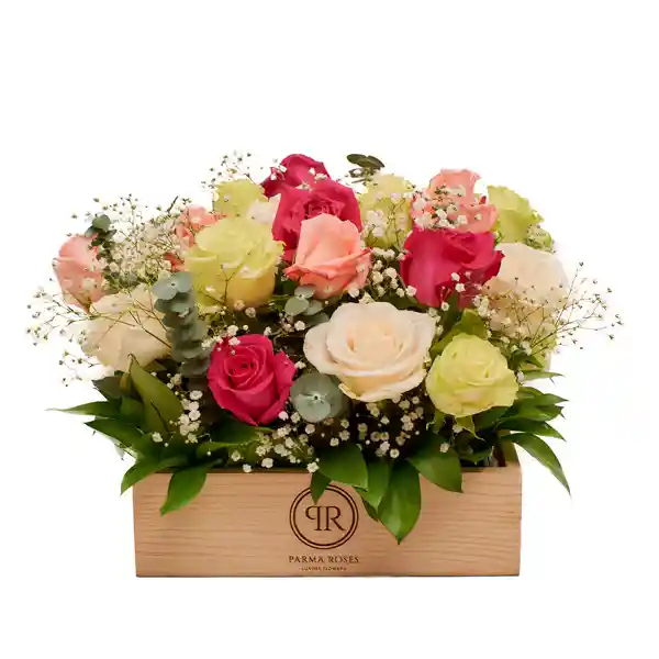 Caja de Madera Con Rosas de Colores de Exportación Agrega el Mensaje Que le Quieres Poner a la Tarjeta en Comentarios