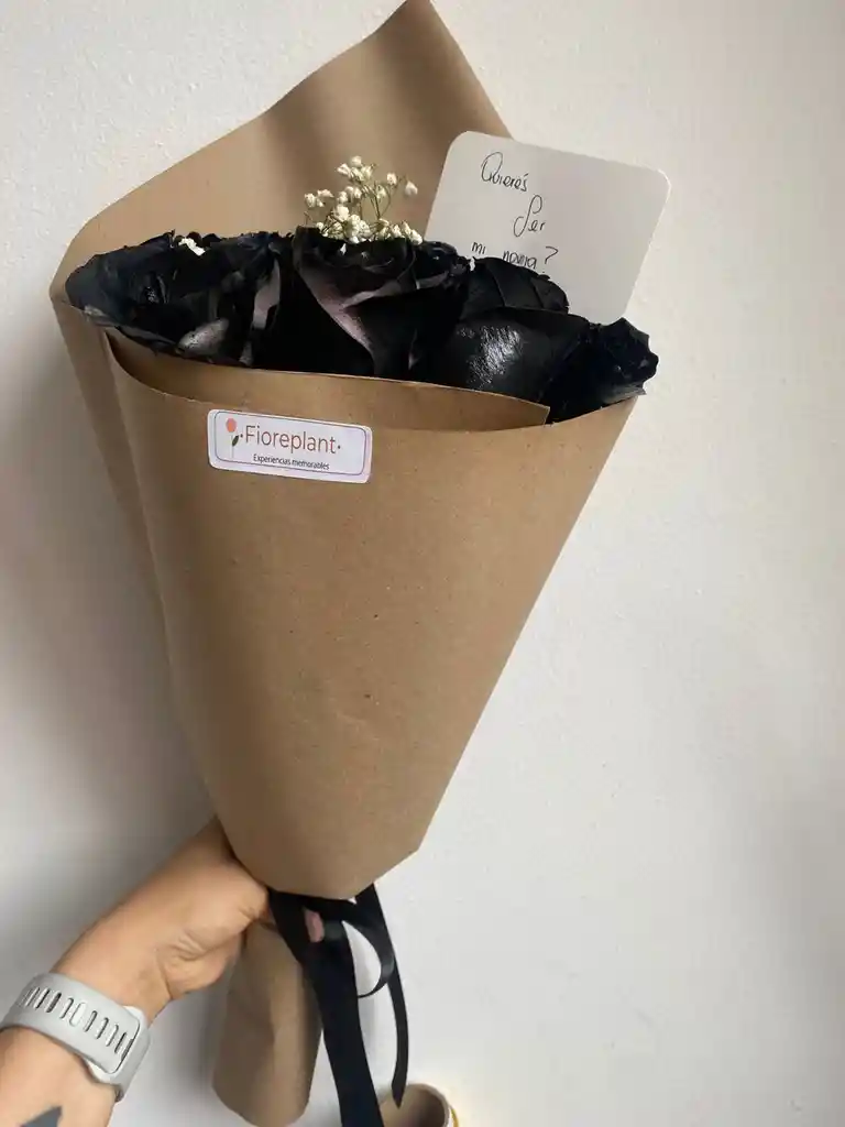 Este arreglo contiene 12 rosas negras envuelgo de manera delicada y minimalista ideal para cumpleaños amor o cualquier ocasión entrega express en Bogotá incluye tarjeta puedes dejarla. En el chat c