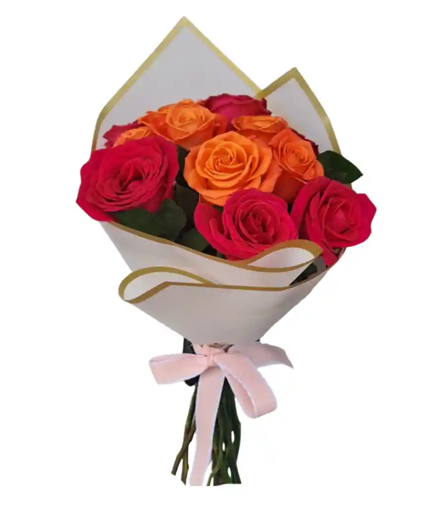 Ramo con 12 rosas - 6 de cada color, papel decorativo premium, moño artesanal y fino follaje. Personalización: Si deseas agregar una tarjeta con mensaje o remitente, por favor escríbelo en la sección de "Comentarios" al realizar tu pedido o indícalo por el chat a tu Rappitendero. *El color de la rosa puede variar.