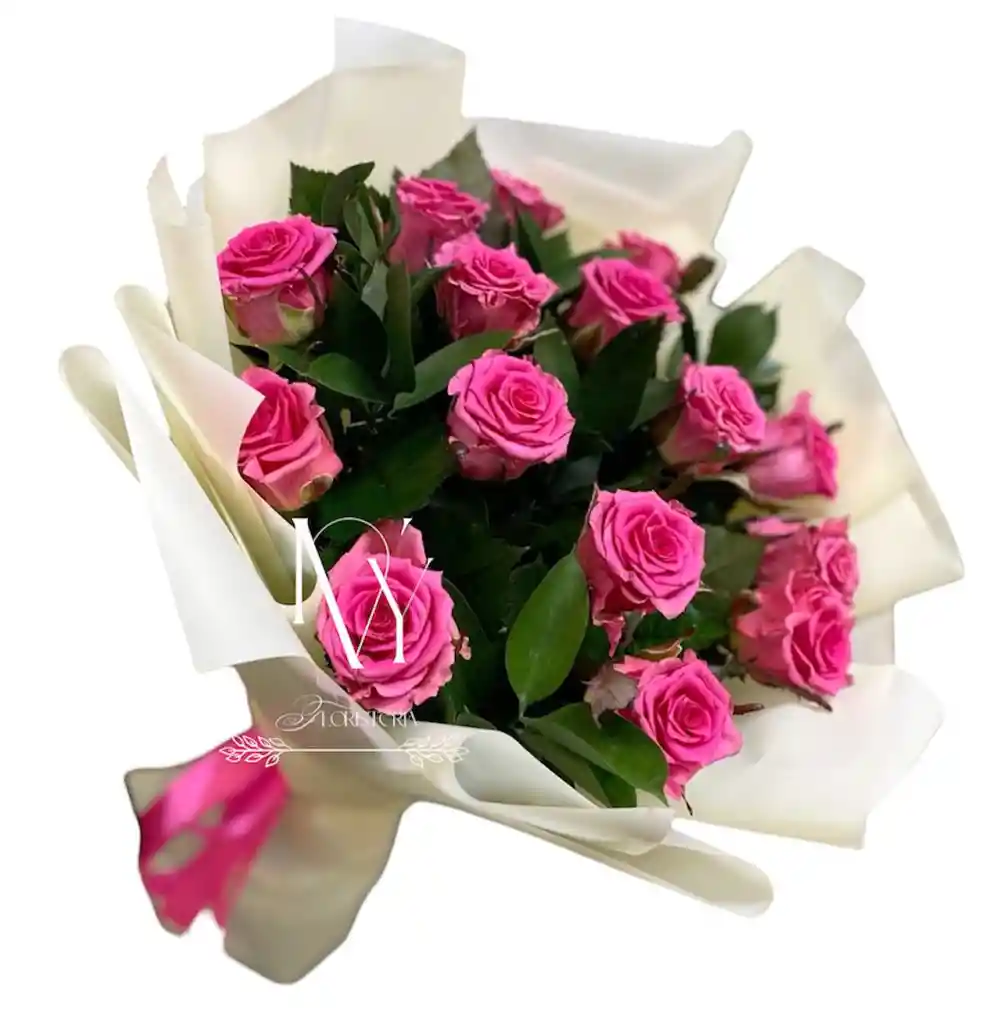 Hermoso bouquet de rosas fucsia x12, un detalle ideal para esa ocasión especial