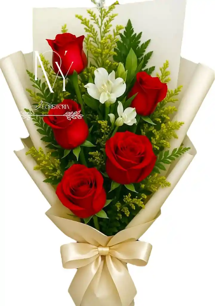 Hermoso ramillete de rosas rojas x5, un detalle perfecto para esa ocasión especial