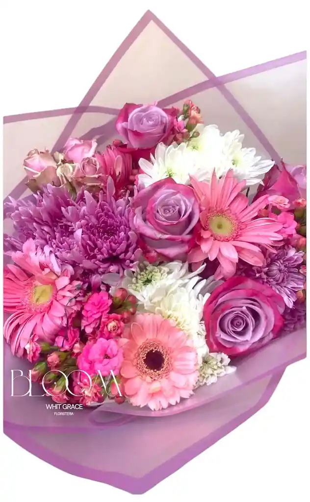 Hermoso bouquet de flores surtidas en tonos lila,un detalle ideal para esa persona especial